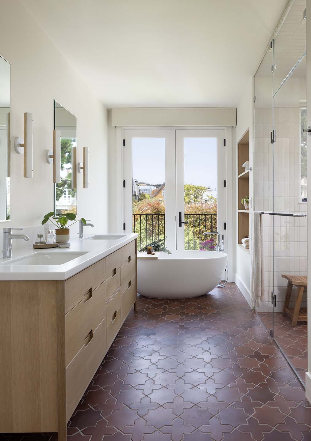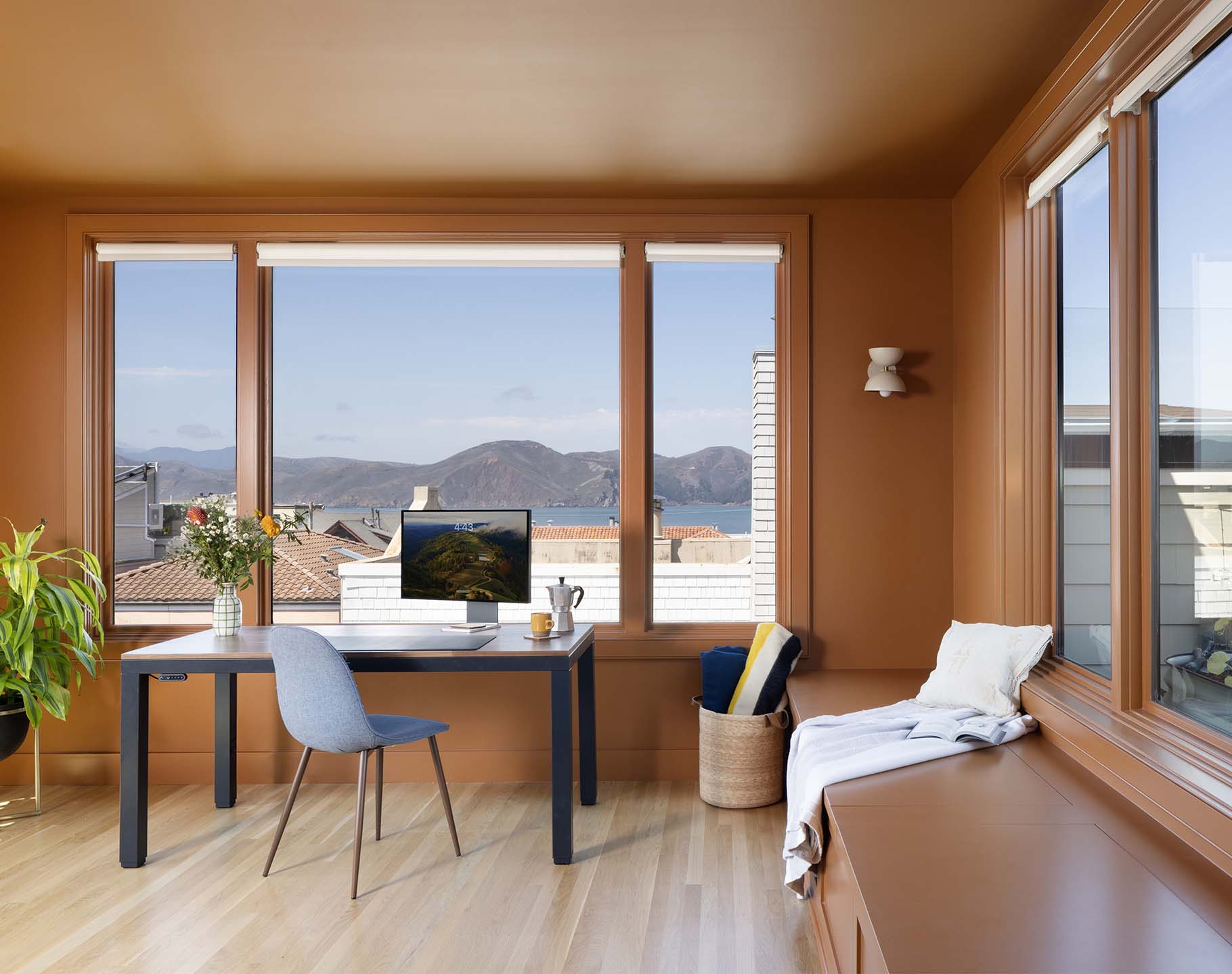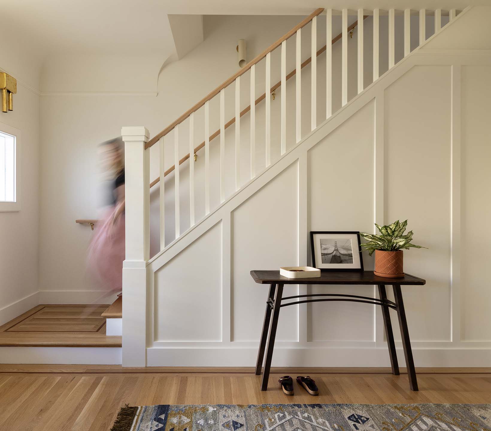 The historic front elevation remains intact, maintaining its character from the street, while a new third level adds valuable space and frames views of the Golden Gate Bridge. Inside, the home has been reconfigured to improve flow and functionality. The kitchen was redesigned from a cramped, outdated layout into a bright and efficient central gathering space. Opening up the rear elevation brings natural light deep into the home and strengthens the connection to the outdoors.